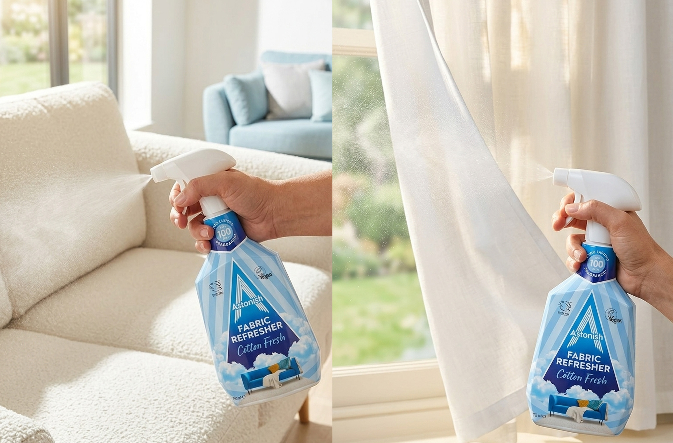 可以使用英國潔織物清新噴霧,分解異味來源,而不是單純用香味覆蓋。